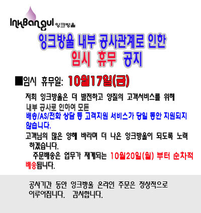 [공지사항] 잉크방울 1일간 임시휴무 안...